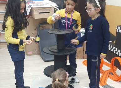 O primeiro passo dessa jornada foi compreender o que significam as palavras que orientam nosso tema: tecnologia, inovação, brinquedo e antigo. Mais do que definições, essas palavras ganham vida dentro da sala de aula, que se transformará em uma verdadeira oficina de criações. Nesse espaço, os alunos foram convidados a investigar como eram os brinquedos do passado, quais materiais eram utilizados e de que maneira a tecnologia foi se aperfeiçoando ao longo do tempo até chegar às inovações que conhecemos hoje. Durante essa fase, a pesquisa será o ponto de partida para a curiosidade, a observação e inspiração. Ao relacionar os brinquedos antigos com a tecnologia atual, as crianças experimentaram, recriaram e refletiram sobre como a sabedoria e a criatividade são dons de Deus. Afinal, como nos lembra a Palavra: “(...) e o encheu do Espírito de Deus, no tocante à sabedoria, ao entendimento, à ciência e a todo ofício (...)” (Êxodo 35:31). E também: “As ruas da cidade ficarão cheias de meninos e meninas brincando.” (Zacarias 8:5). Assim, a etapa da pesquisa deixa de ser apenas um estudo teórico e se torna uma vivência prática, onde cada aluno é convidado a ser inventor, explorador e aprendiz.